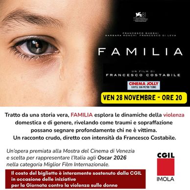 SPECIALE EVENTO ORGANIZZATO DALLA CGIL IN OCCASIONE DELLE INIZIATIVE PER LA GIORNATA CONTRO LA VIOLENZA SULLE DONNE - VEN 28 NOVEMBRE - ORE 20